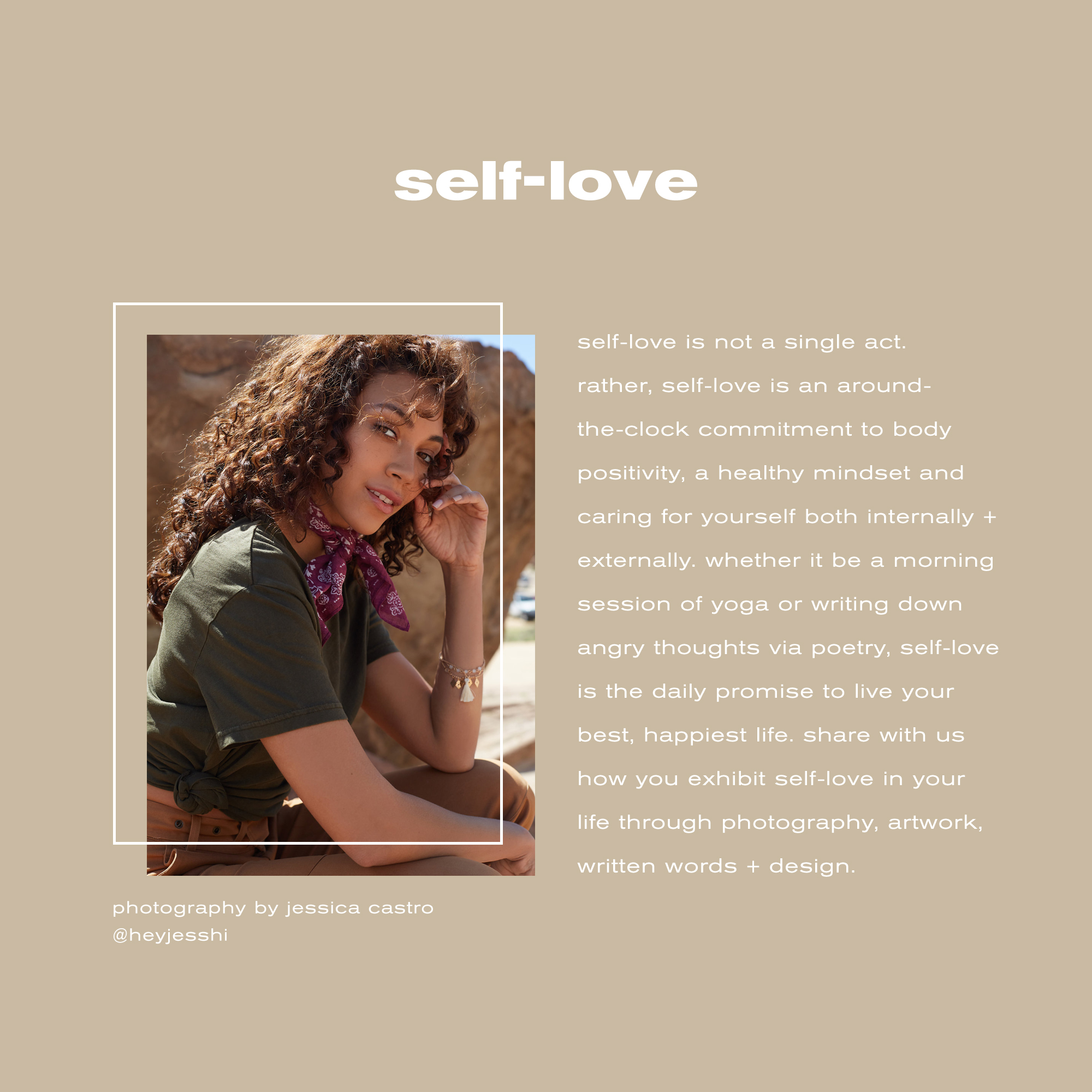 Upcoming Theme: Self-love – Self-love is not a single act. Rather, self-love is an around-the-clock commitment to body positivity, a healthy mindset and caring for yourself both internally and externally. Whether it be a morning session of yoga or writing down angry thoughts via poetry, self-love is the daily promise to live your best, happiest life.